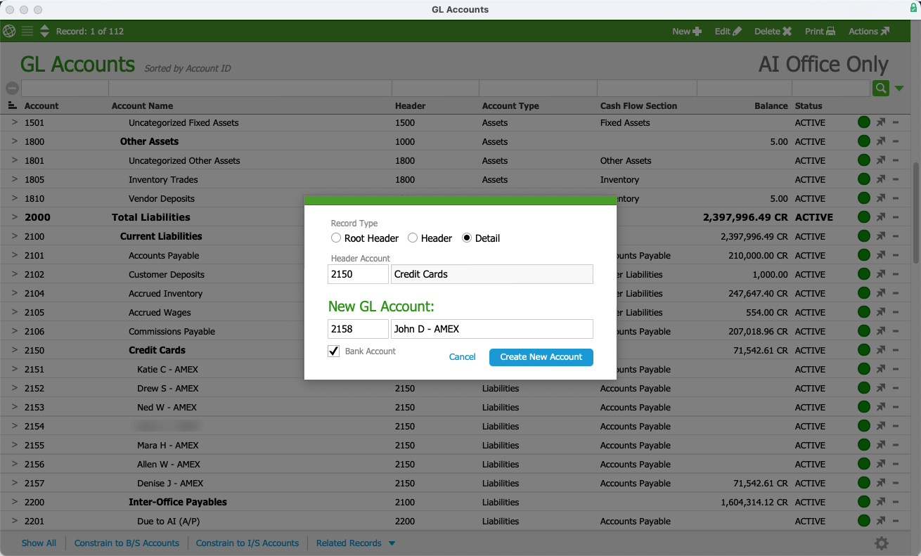 - From the Main Menu, go to Accounting > GL Accounts > New.