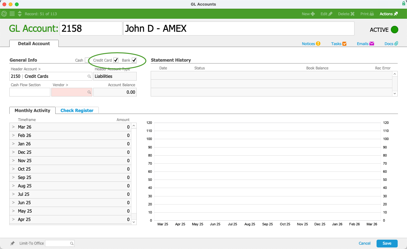 Before you can use corporate credit cards for payments in the various modules, you must enter the credit card as a GL account and configure related team member records.