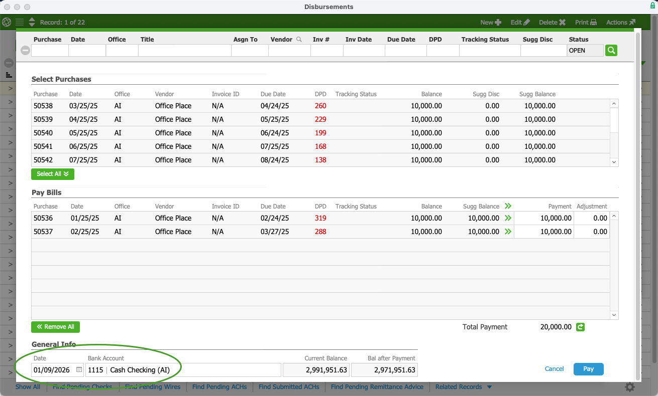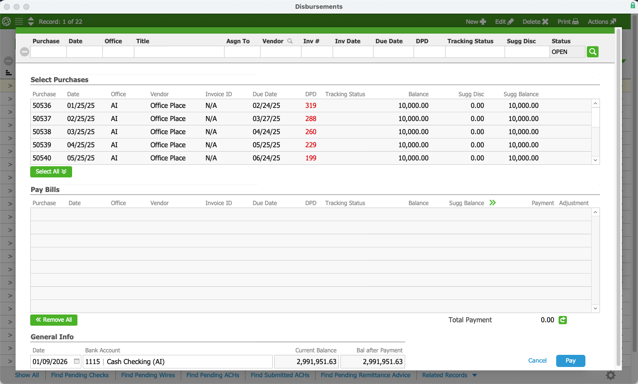 Pay Bills in the Purchases Module